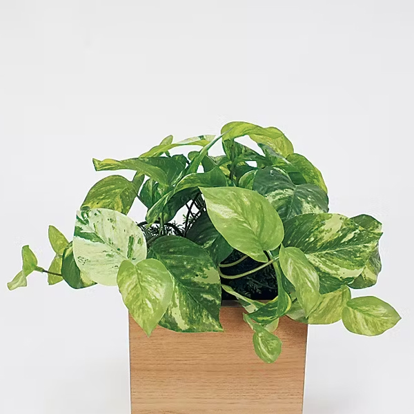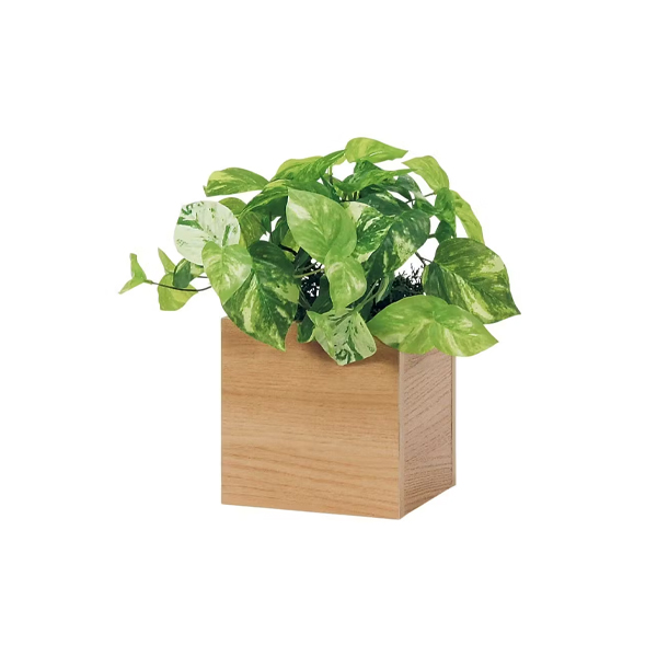 ボリューム感があるキューブタイプの卓上ポット。明るい色合いの生き生きとしたポトスが元気を与えてくれます。木目ポットがインテリアに合わせやすくオシャレです。 木目とグリーンがインテリアにも合う新感覚のグリーンポットです。 並べて使うと目隠しとしてやインパクトあるディスプレイができます。フェイクググリーンなのでお手入れ不要、手軽で衛生的です。 アパレルショップや物販店の棚や飲食店や食堂のテーブル、オフィスのカウンター、いろんな所のちょっとしたスペースに置いて雰囲気づくりにお使いください。