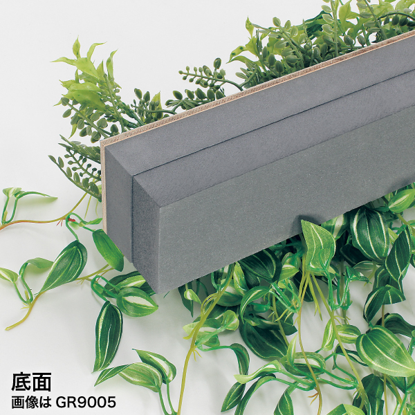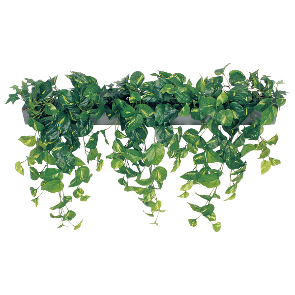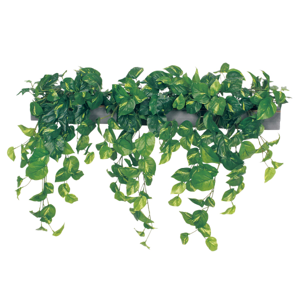 既存のプランター・造作家具や造作什器にセットして使う、設計・製作業者様向けのグリーンパーツです。グリーンを台座に取り付けてアレンジした状態でご提供するので、置くだけで簡単にセットできます。ポットやプランター用のワイドサイズのアレンジグリーンで、手軽に家具に組み込めるので、グリーン演出の幅が広がります。D75タイプはしだれで自然な壁面装飾を演出します。土台パネルがW900×D75mmの吊り下げタイプ。ポトスを使ってグリーンのボリュームをUPさせました。