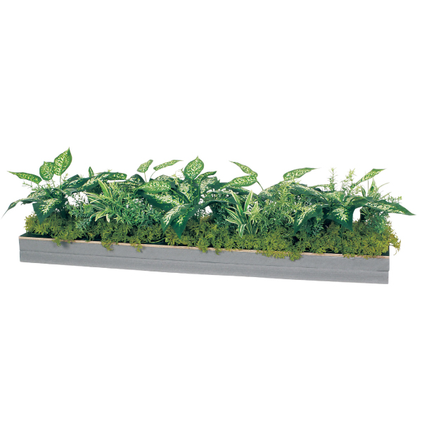 既存のプランター・造作家具や造作什器にセットして使う、設計・製作業者様向けのグリーンパーツです。グリーンを台座に取り付けてアレンジした状態でご提供するので、置くだけで簡単にセットできます。ポットやプランター用のワイドサイズのアレンジグリーンで、手軽に家具に組み込めるので、グリーン演出の幅が広がります。D200タイプは既存プランターのグリーン装飾におすすめです。見応えのするディフェンバキアはテーブルを華やかにします。