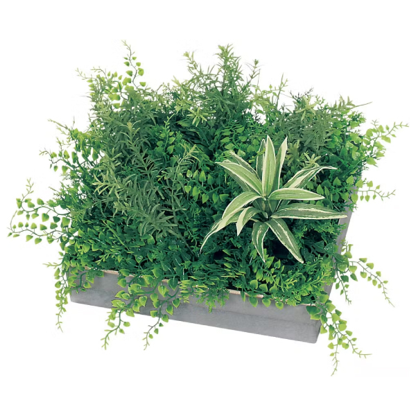 既存のプランター・造作家具や造作什器にセットして使う、設計・製作業者様向けのグリーンパーツです。グリーンを台座に取り付けてアレンジした状態でご提供するので、置くだけで簡単にセットできます。用途やイメージに合わせて、いろいろなグリーン演出ができるスクエアサイズのアレンジグリーンです。既存プランターに合わせて、連接して使う演出スタイルです。連接や組み合わせを工夫することで、オリジナリティーある演出が可能です。300mm角のスクエアタイプでライトなグリーンが明るい雰囲気を演出。連接して使う時に重宝するシンプルなアレンジです。
