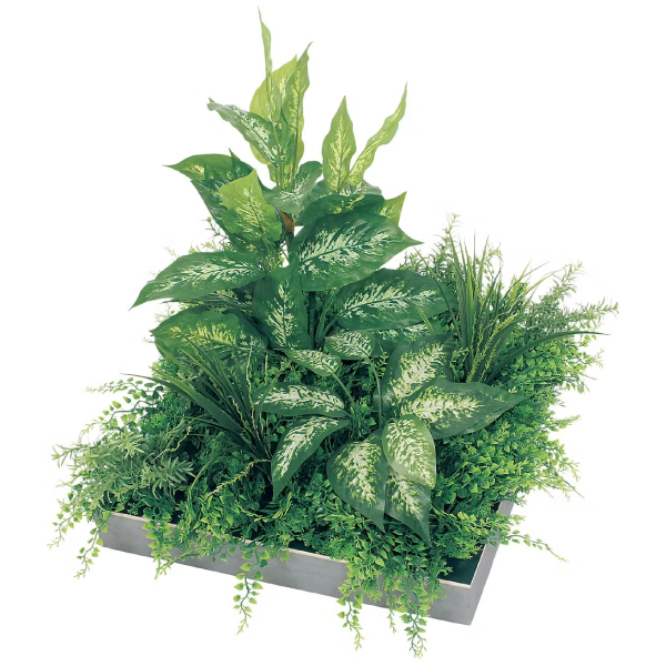 既存のプランター・造作家具や造作什器にセットして使う、設計・製作業者様向けのグリーンパーツです。グリーンを台座に取り付けてアレンジした状態でご提供するので、置くだけで簡単にセットできます。用途やイメージに合わせて、いろいろなグリーン演出ができるスクエアサイズのアレンジグリーンです。既存プランターに合わせて、連接して使う演出スタイルです。連接や組み合わせを工夫することで、オリジナリティーある演出が可能です。450mm角のスクエアタイプでライトなグリーンが明るい雰囲気を演出。連接して使う時に重宝するシンプルなアレンジです。