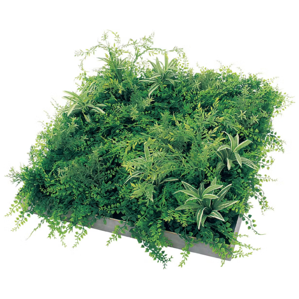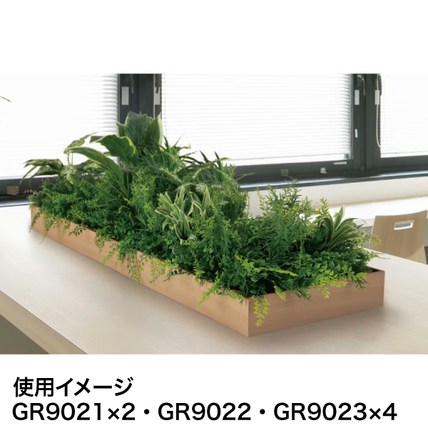 既存のプランター・造作家具や造作什器にセットして使う、設計・製作業者様向けのグリーンパーツです。グリーンを台座に取り付けてアレンジした状態でご提供するので、置くだけで簡単にセットできます。用途やイメージに合わせて、いろいろなグリーン演出ができるスクエアサイズのアレンジグリーンです。既存プランターに合わせて、連接して使う演出スタイルです。連接や組み合わせを工夫することで、オリジナリティーある演出が可能です。600mm角のスクエアタイプでライトなグリーンが明るい雰囲気を演出。連接して使う時に重宝するシンプルなアレンジです。