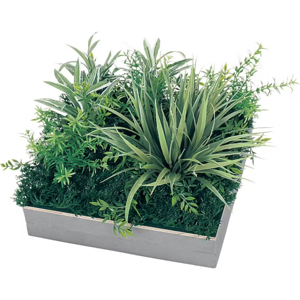 既存のプランター・造作家具や造作什器にセットして使う、設計・製作業者様向けのグリーンパーツです。グリーンを台座に取り付けてアレンジした状態でご提供するので、置くだけで簡単にセットできます。用途やイメージに合わせて、いろいろなグリーン演出ができるスクエアサイズのアレンジグリーンです。既存プランターに合わせて、連接して使う演出スタイルです。連接や組み合わせを工夫することで、オリジナリティーある演出が可能です。300mm角のスクエアタイプでシックな色合いが落ち着いた雰囲気を演出。リーフをミックスしたアレンジで使いやすいデザインです。