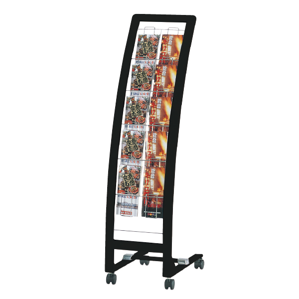 カタログスタンド PRX-25 白 A4 2列5段アールタイプ ストッパー付キャスター W515×D470×H1140mm