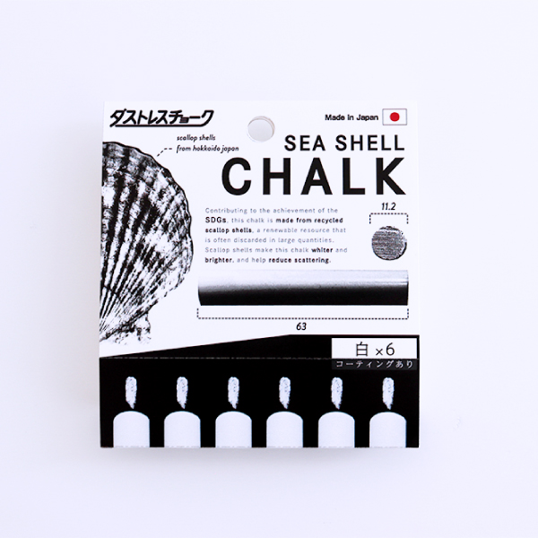 ホタテの貝殻の微粉末を配合したベストセラーチョークが、パッケージにもホタテの貝殻を使用しバイオマス仕様に。