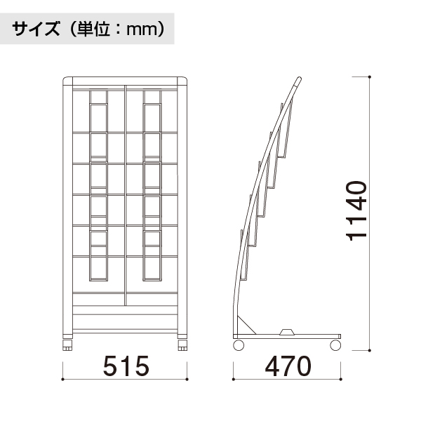 カタログスタンド PRX-25 白 A4 2列5段アールタイプ ストッパー付キャスター W515×D470×H1140mm