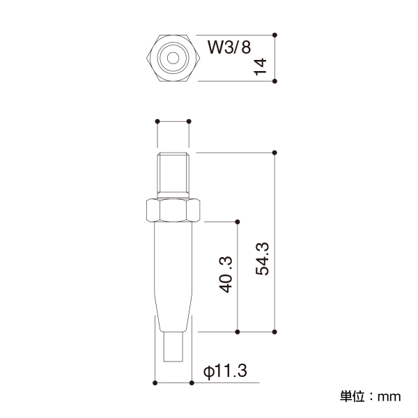 | 備考 | ○ワイヤーグリップタイプ○一方向固定○W3/8のナットアンカーに取り付けられます○補強材に取り付ける場合にはワイヤーが貫通するので余分なワイヤーはボルト側より引き出せます |